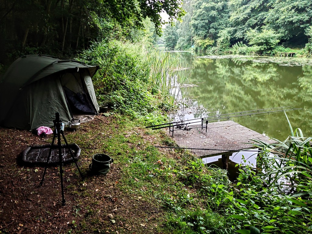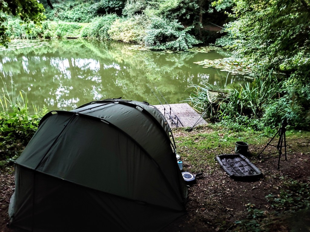 Bank holiday weekend arrived and with it came the opportunity for a quick overnighter on a club lake I have just joined. The plan was to head out the door for 3:00 pm and hopefully be fishing by 5 pm but like all our best laid out plans this was not to be the case. I had dozed off and opening my eyes at 6 pm panic set in, I had slept past the time I had wanted to leave and with night’s drawing in I knew I needed to get out quick to avoid setting up in the dark. Arriving at the lake I could see a couple of cars in one of the car parks but that was it, and after wandering down for a quick scout there was one peg that looked super fishy, being right on the edge of an out of bounds area it had loads of fish holding features and looked ripe for the picking.