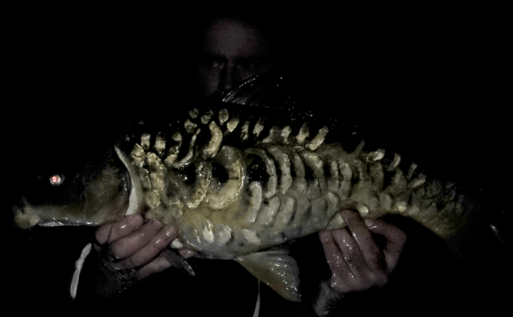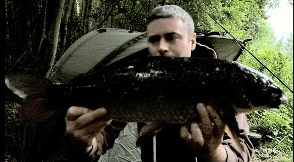 Laying back in the bivvy it was near silence, the only noise being the deer on the far bank making the occasional banging noise, then out of nowhere my far rod screamed off. Lifting into the fish I could feel it wasn’t massive and after a spirited fight I soon had a scaley mirror sliding into the net. What a stunning fish this was, the big plate scales shimmered in my headtorch and I could see how healthy she was. After a couple of pics I slid her back and watched her slide into the depths, yeeeees I hadn’t blanked and it looked like my tactics were working. Another stick was made and attached to the hook before being cast out bang on the money once again.